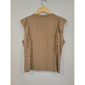 ARIAT Women's S Relaxed Fit Washed Jersey Tank Petrified Oak Ruffle Raw Hem