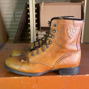 ARIAT Women's Size 7.5 B Roper Lace Up Brown Leather Western Cowgirl Boots 11080