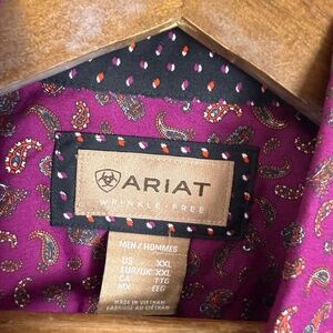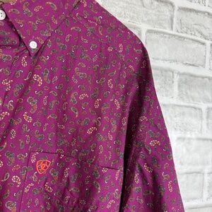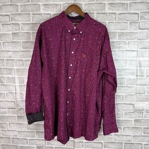 ARIAT Wrinkle Free Dark Purple Paisley AOP Long Sleeve Button Down Shirt Men 2XL