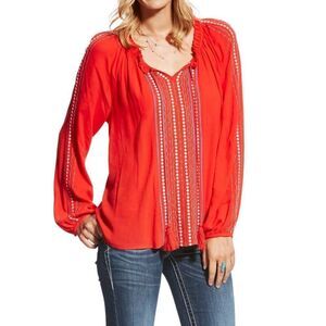 ARIAT SHIRT Shawna Top Woman’s Small HIGH RISK RED Long Sleeve Lightweight