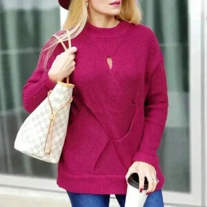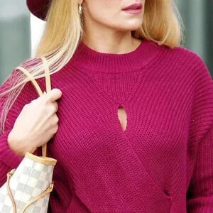 Grab this plum colored weaved front knitted sweater for your fall / winter sweater wardrobe. The color is one of our best sellers!!