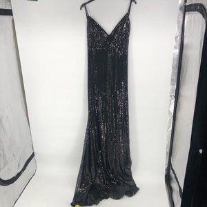 ARIEL SEQUIN BACKLESS GOWN DRESS Black Maxi Gown Large NWT *flaw* $345