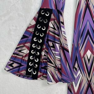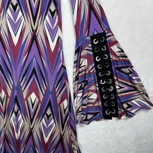 ARIELLA Retro Lace Up Bell Sleeve Purple Geometric Bohemian 1970s Midi Dress S