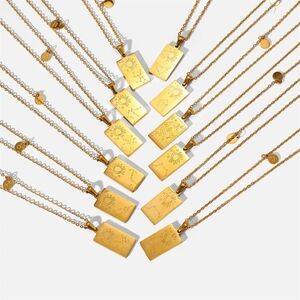18k Gold Plated Stainless Steel Zodiac Sign Tarot Card Necklace - ARIES♈