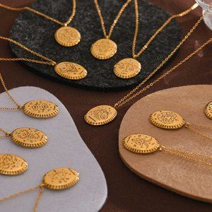 ARIES--NEW 18K Gold Plated ARIES Sign Zodiac Oval Pendant Necklace