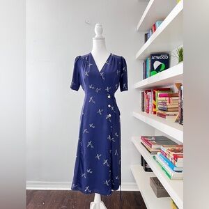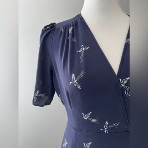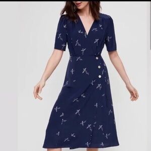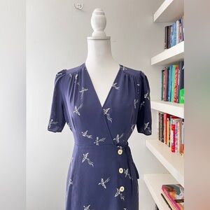 ARITIZIA WILFRED Mirabelle Navy & White Silk Wrap dress Sz 4