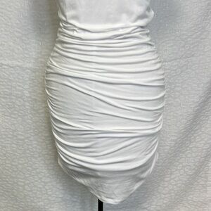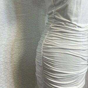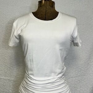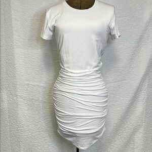 New like condition white Aritzia Babaton contour ruched mini crew neck tee shirt dress. Size Medium. Please check out all pics and comment below with any questions