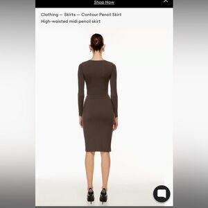 This is a high-rise midi pencil skirt with an elastic waist. It's made with Babaton's signature Contour — luxe, ultra-flattering fabric coveted for its smoothing effect and second-skin feel. Essential for every body.