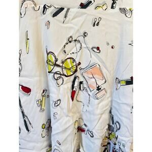 Cute graphic design with makeup, lipstick, keys, earrings, necklace, jewelry, perfume, etc.