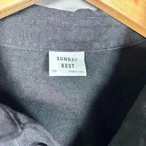 ARITZIA SUNDAY BEST Preppy Boxy Black Crop Polo Collar Button Up Top Women XS