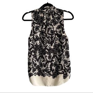ARITZIA Silk Sleeveless Button Front Blouse Black Cream Print XS