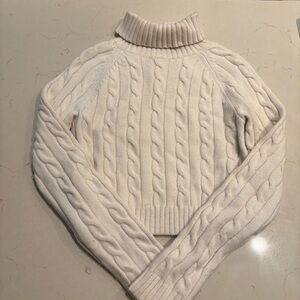 Elegant cream turtleneck with cable knit design. Soft and warm for any occasion.