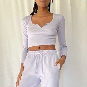 ARITZIA TNA Small Lavender Waffle Knit Long Sleeve Scoop Neck Cropped Henley Top