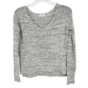 ARITZIA Talula Azurelee Heathered Gray/White V Neck Long Sleeve Knit Sweater Sz S Minimal