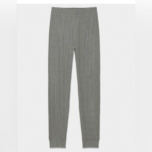 Discover comfort and style with these gray ribbed pants. Perfect for any casual occasion.