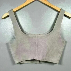 ARITZIA WILFRED FREE Crop Bralette Stretchy Denim Button Up Tank Top Beige Gray Women Small 0