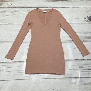 ARITZIA WILFRED FREE Dress Bodycon V-neck Long Sleeves Stretchy Size XS