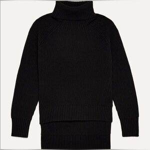 ARITZIA WILFRED FREE Lin Sweater Black 100% Merino Wool Hi Lo Turtleneck XS NICE