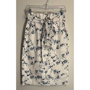 ARITZIA WILFRED Le Fou Maryvonne Skirt Med Tie Front Paper Bag White Blue Floral