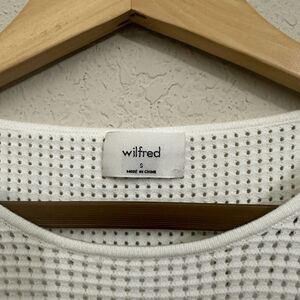 Elevate your wardrobe with this gorgeous ARITZIA WILFRED Rosetta Mesh Crewneck Sweater in Light Birch. The sweater features a stylish waffle pattern, long sleeves, and a crew neckline, making it perfect for travel, party/cocktail, or casual occasions. The lightweight and stretchy knit fabric, made of 52% Viscose and 38% Polyester, ensures a comfortable fit for regular size women. This sweater is a must-have for the winter, fall, or spring season. The sweater is easy to care for, as it is hand wash only. The sweater is available in size S, and it is a regular fit. The sleek and modern design of this sweater is perfect for any fashion-conscious woman.