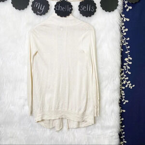 Lightweight off white/cream open front cardigan/duster with two front pockets. Perfect for layering.