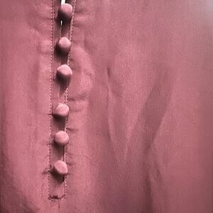 Chic deep red silk dress. Features lace accent, layered skirt, and elegant button detailing on back. Good condition.