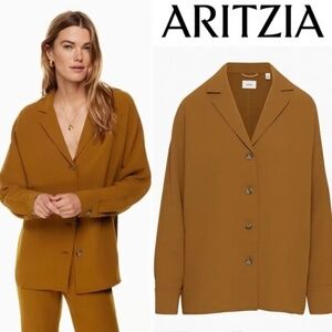 ARITZIA Wilfred Freeform Collared Button Down Shirt in Chestnut Tan - Size Small