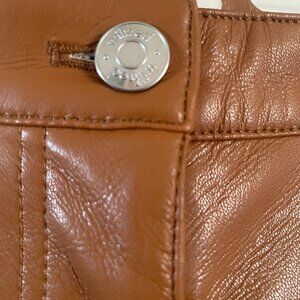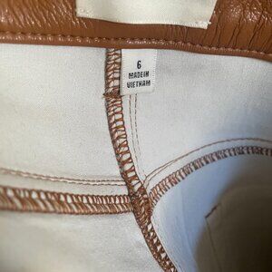 Rich Chestnut brown vegan leather pants from Aritzia. These are a Size 6 in excellent used condition with no flaws. Only worn a few times. Easy to dress up with heels or dress down with sneakers.