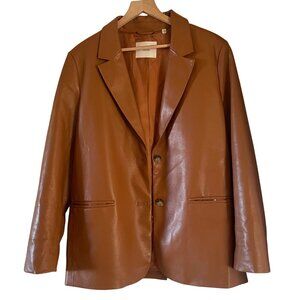 ARITZIA Wilfred Memories Blazer Rich Chestnut Brown Faux Vegan Leather Size M