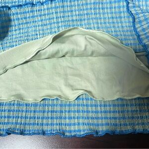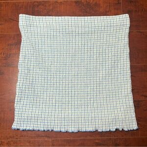 Textured mini tube fit, elastic waist with a lettuce edge hem. Excellent pre-owned condition, no flaws.