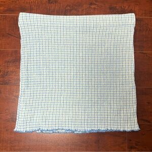 ARITZIA Wilfred Reunion Mini Tube Skirt Blue Green Plaid Seersucker Size Large