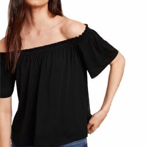 ARITZIA Wilfred shirt black top sartre off shoulder linen M
