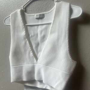 ARITZIA BABATON DEEP V SCULPT KNIT WHITE TANK SIZE L