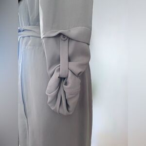 This chic and elegant Quincey Jacket from Aritzia Babaton features a gorgeous trench silhouette in a modern taupe hue tailored with a silky fabric that looks polished all day long. Simple, precise detailing gives it a streamlined appeal. The long sleeves can be rolled w/ a buttoned with a tab. Removable belt. Inseam pockets. Small shoulder pads for added structure. 100% polyester Size Small.