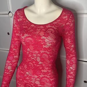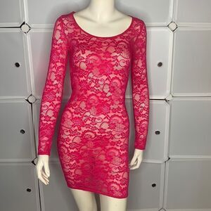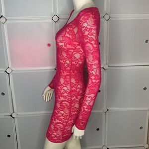 VGUC. ARITZIA Talula Pink Long Sleeve Lace Mini Dress Size XS. Magenta/Pink. Fabric content tag has been removed