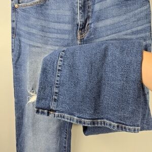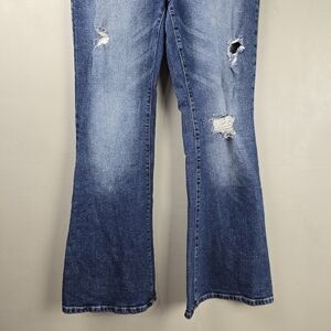 ARIYA Denim Distressed Flared Bell Bottom Jeans Boho Cowgirl Blue Women Size 11