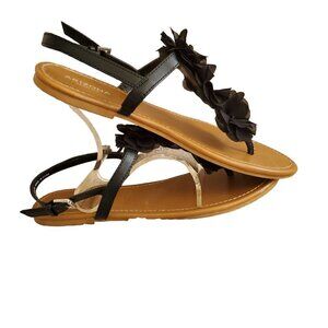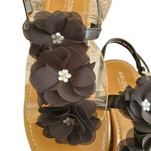 Arizona Jean Company Flower sandals size 11. Black in color, adjustable side buckle strap. The flower has silver hardware in the center. (A66-A1)