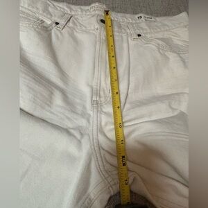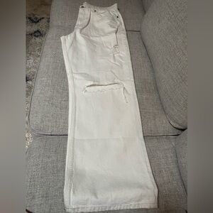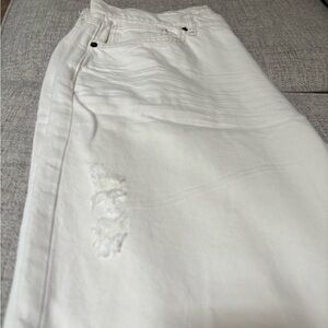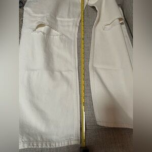 White , zip- up , 5 pockets, pre- owned good condition white jeans, waist measures 17.5” length 43.5” leg width 12”
