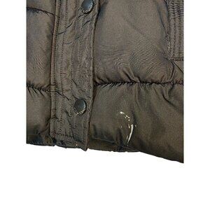 ARIZONA JEANS CO Women Puffer Vest Jacket Brown Faux Fur Hooded Large EUC