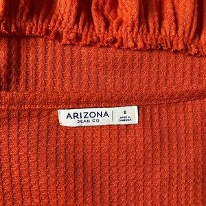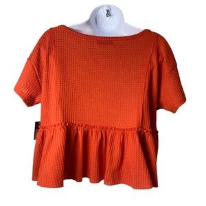 NWT ARIZONA WOMEN'S SIZE S ORANGE SHADE BABYDOLL SHIRT SHORT SLEEVE CROPPED WAFFLE WEAVE