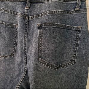 Gently worn women’s Arizona medium-wash jeans with rips at the knees. High-rise, comfy, and very flattering. Size women’s 13 juniors.