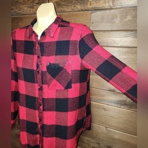 Ladies, brand Arizona Jean Company black AND red plaid long sleeve button-up collared top with one chest pocket. Size XLARGE in great condition.