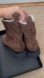 Good pre-owned condition, except one zipper pull on the right boot is broken - see photos