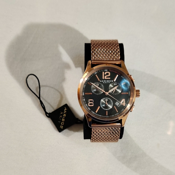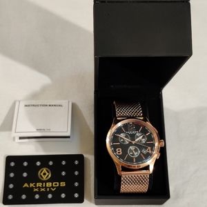 LIMITED AKRIBOS XXIV 46 MM RETRO QUARTZ CHRONOGRAPH STAINLESS STEEL MESH BRACELET