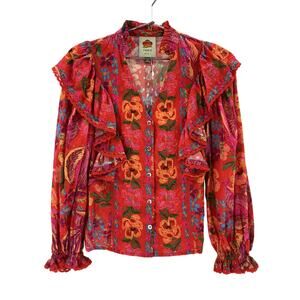 ARM Rio �Red Spring Bananas� Multicolor Cotton Printed Blouse Size XS