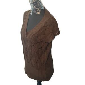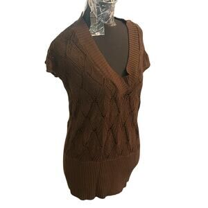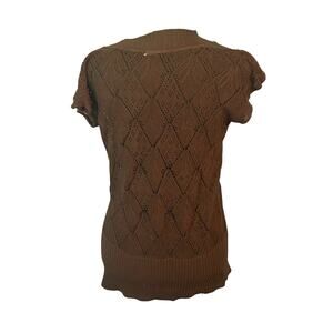ARMAND & ALBA Women's XL 100% Acrylic Open Knit Short Sleeve Brown Sweater