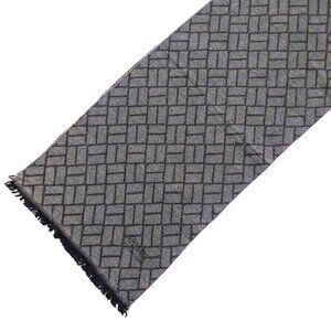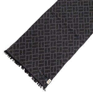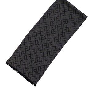 Details: Vintage Grey & Grey Rectangular Geometric Print Logo Embroidered Scarf