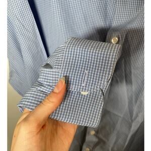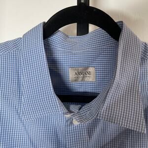 ARMANI COLLEZIONI Men's Checked Cotton Button Front Full Sleeve Shirt XXL Blue