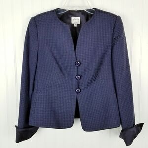 ARMANI COLLEZIONI Womens Purple Blazer Evening Jacket Size 10 Collarless Button