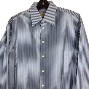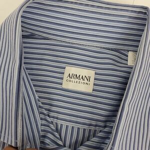 ARMANI Collezioni Shirt Mens Large 41/16 Blue Button Up Striped Casual Designer